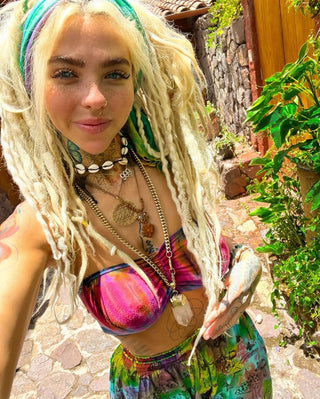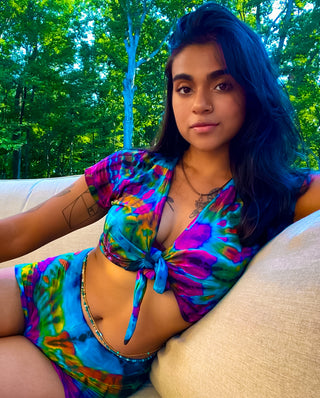 AURORA HOODED CINCH DRESS - TURQUOISE