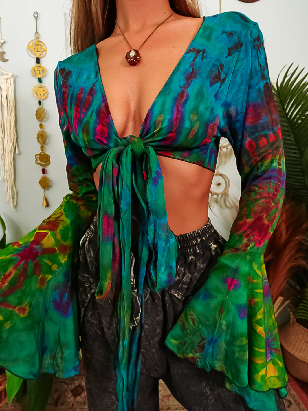 ✺ As this garment being handmade, the tie dye patterns, colors and placements will vary. Pictures are used for reference to show the style & the fit of the garment only. The top you receive will be unique to you and only you as each one made is considered one of a kind. Yours may contain more colors, or less colors, more patterns or less patterns, placed in specific areas due to the garment being hand dyed.