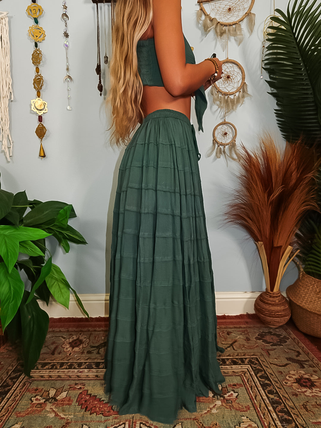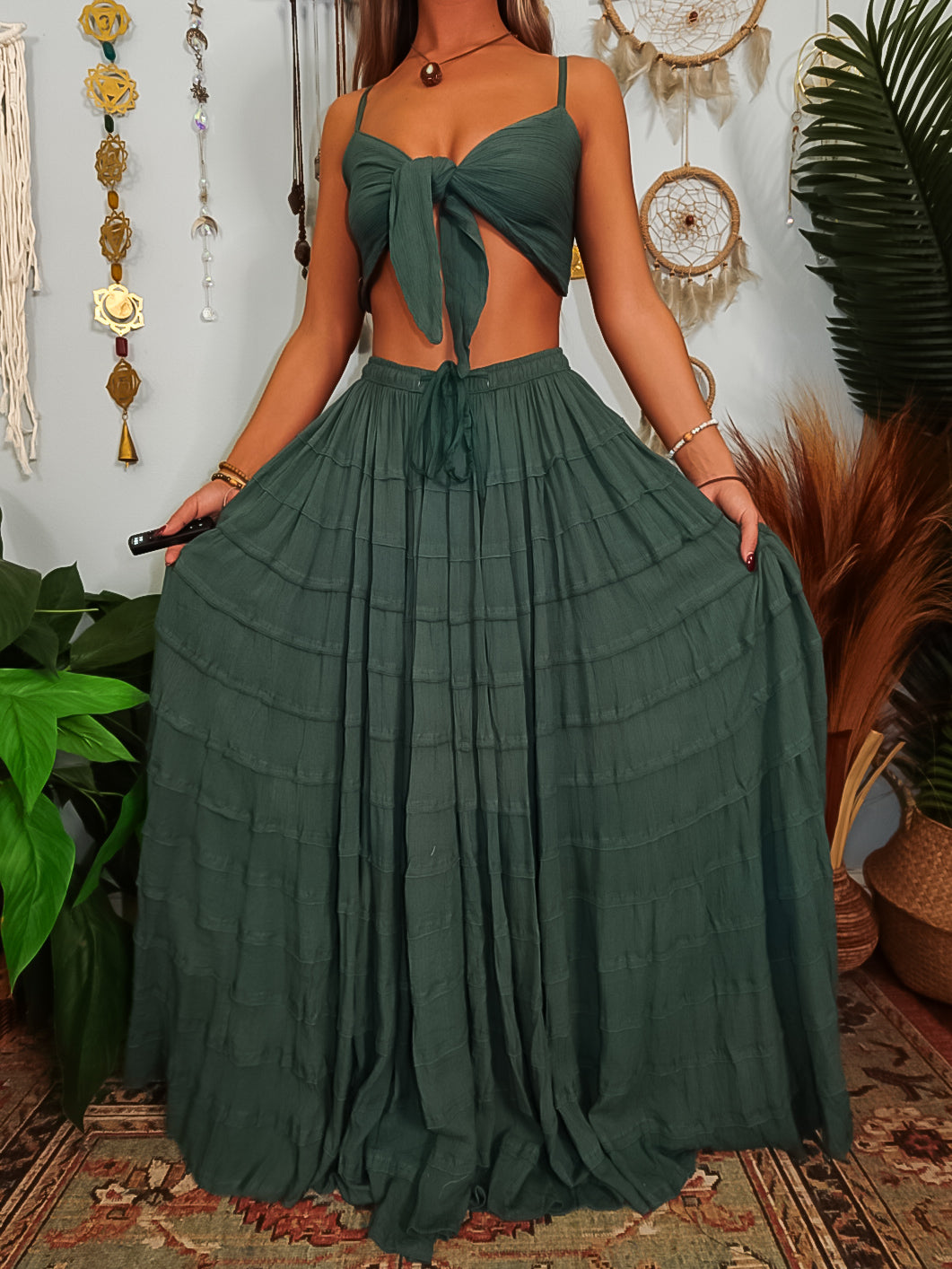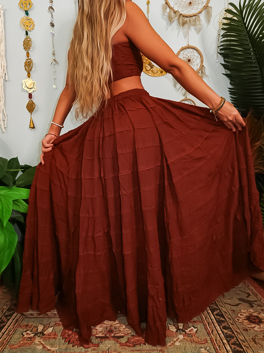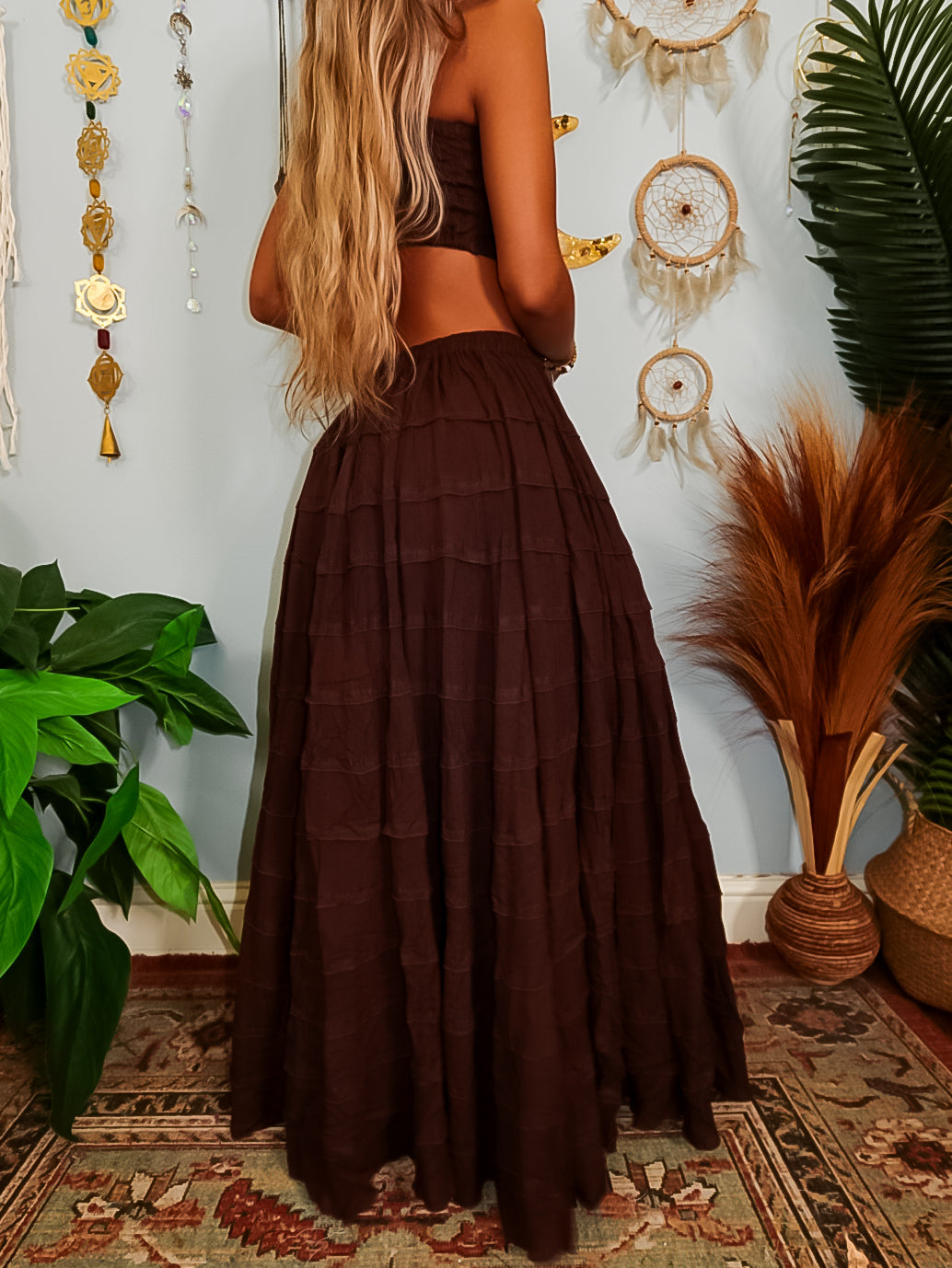 ✺ The Luella Tiered Skirt is an exclusive and original design by Ordinary Selenophile. This skirt features a drawstring waistband, allowing for an adjustable fit that accommodates various individuals. With a mid-length lining, it ensures comfort, while its ultra-wide design promotes increased airflow and movement.