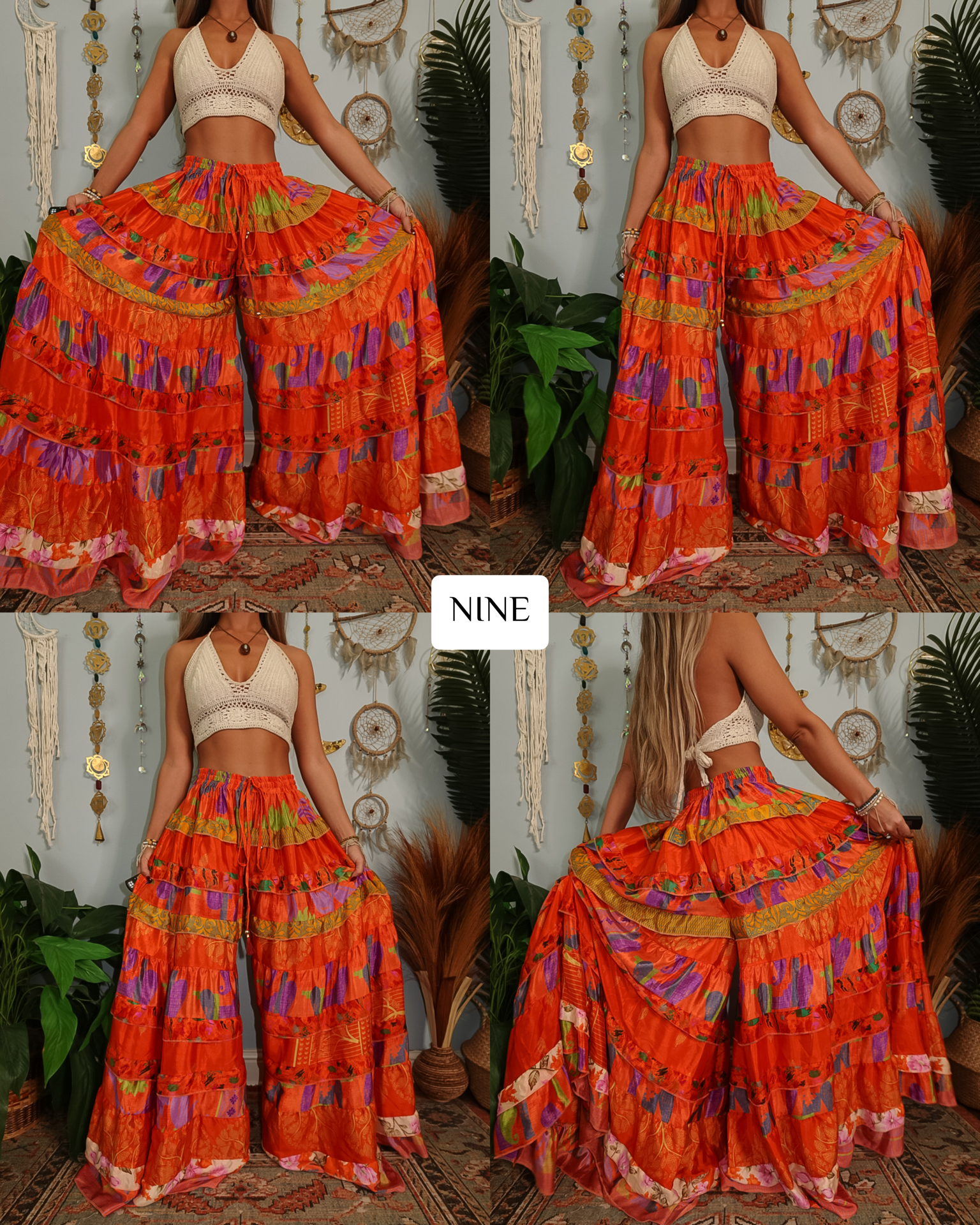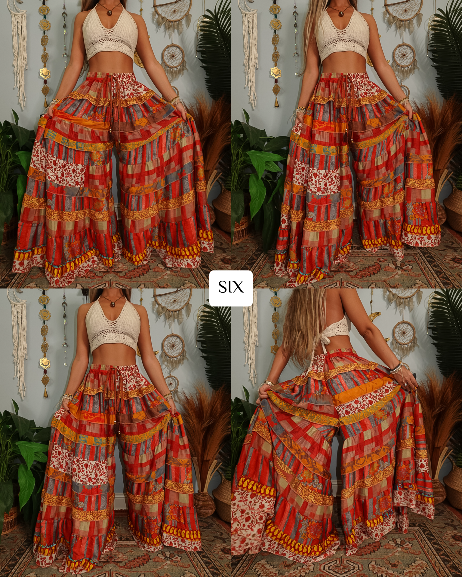 ✺ The ORIGINALLY designed and exclusive one of a kind Luna Tiered Pants by Ordinary Selenophile are handmade from recycled sari and silk scrap pieces, left over from other projects, that are stored for many months to handcraft each and every pair you see to prevent waste! Ordinary Selenophile works directly one on one with the team to create this original design by incorporating originality, creativity, economical sustainability and love into each pair you see today! As this garment is one of a kind, the pair you receive will be unique to you and only you as no two will ever be identical.