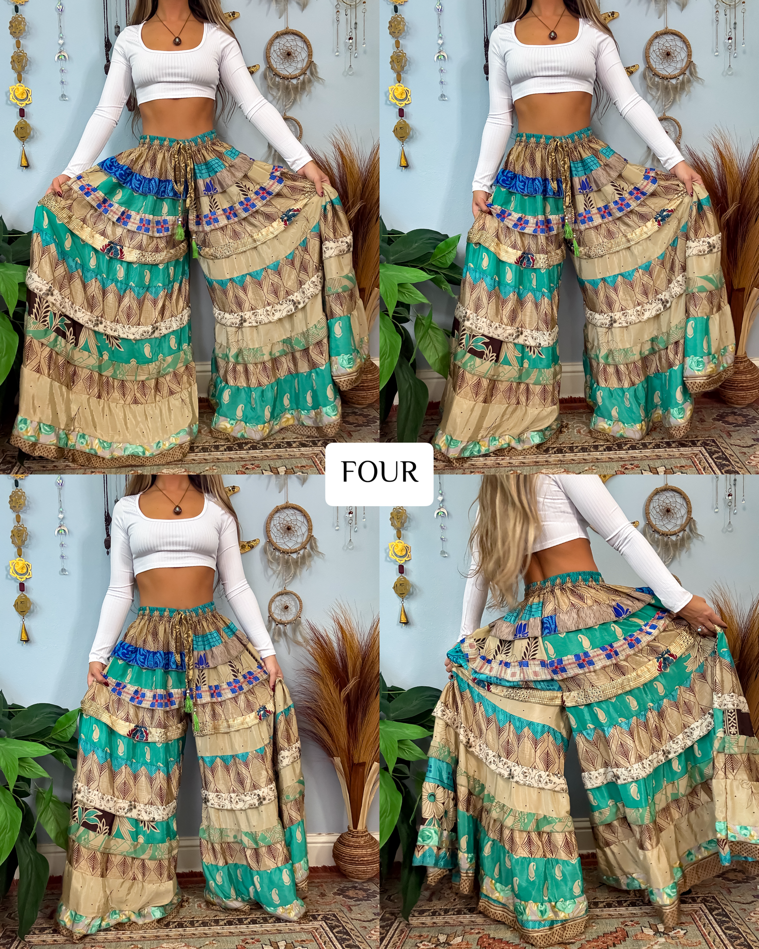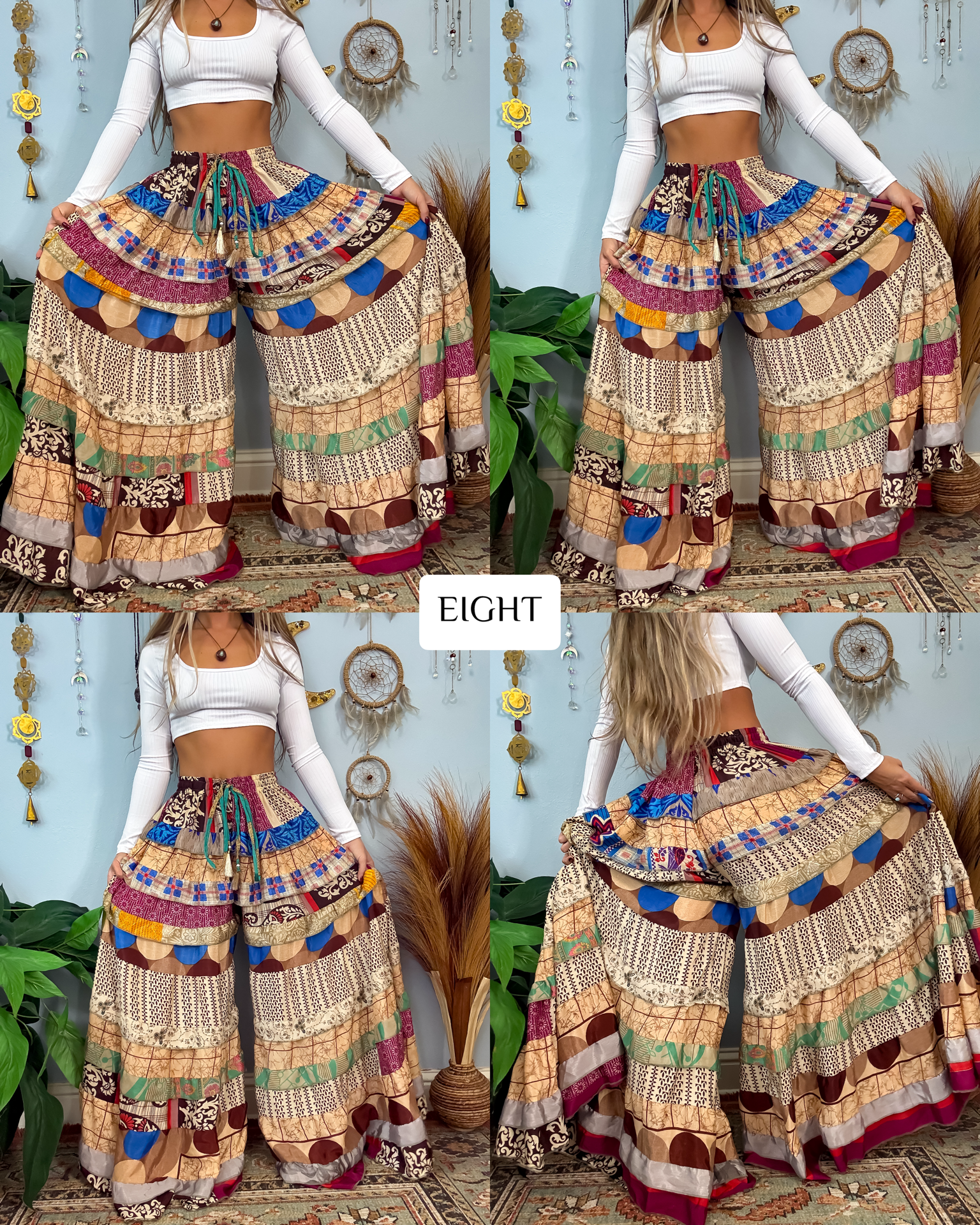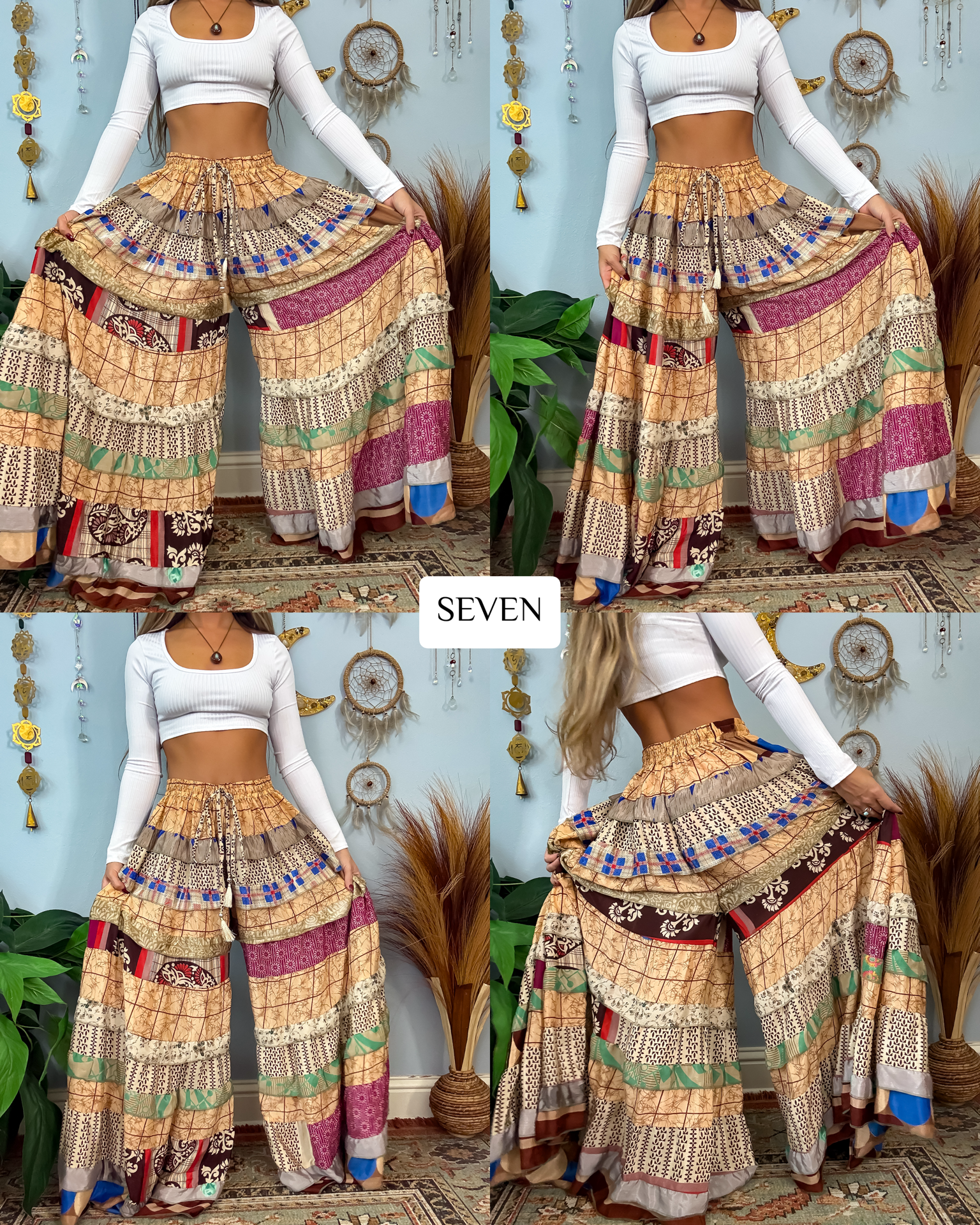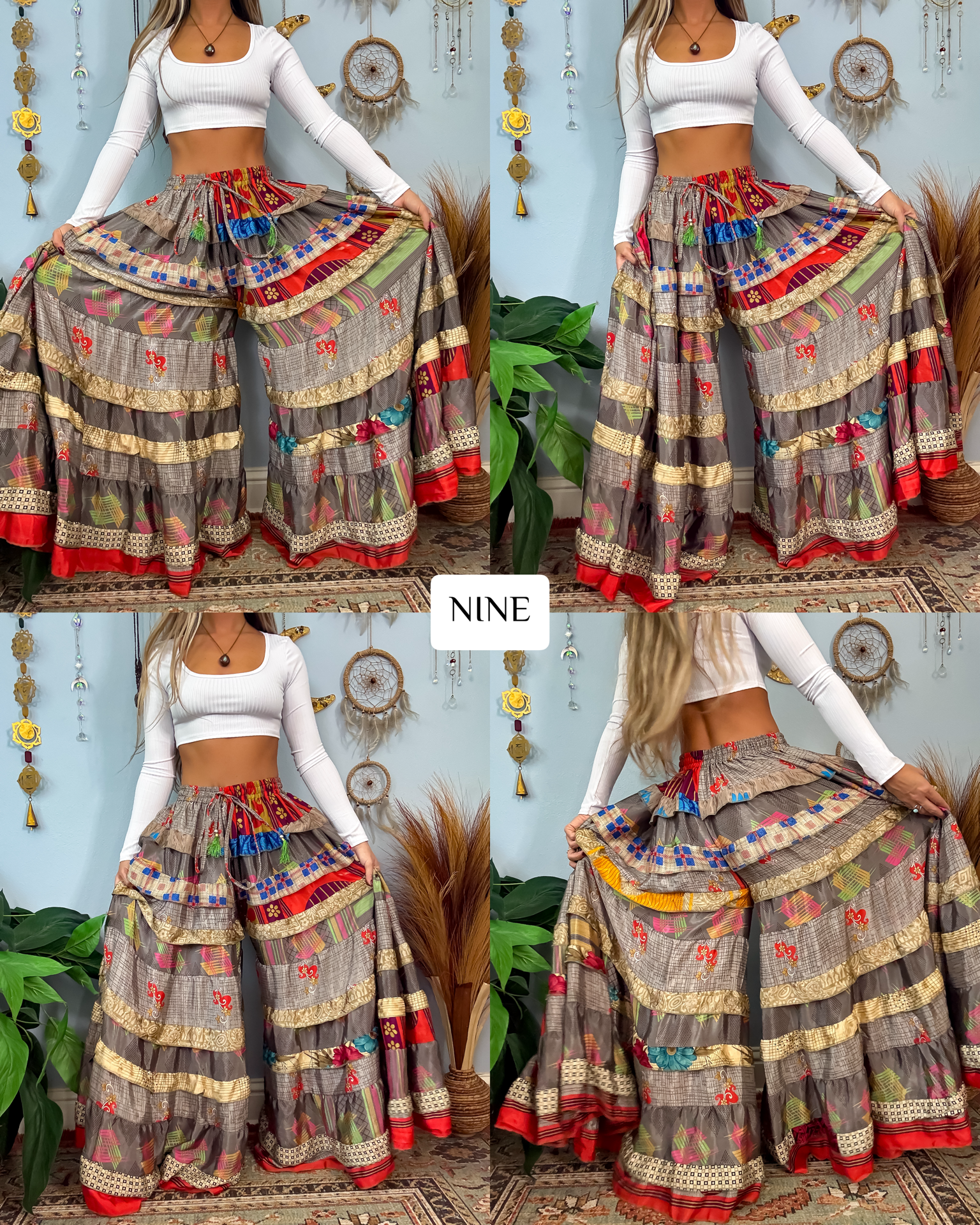 ✺ The ORIGINALLY designed and exclusive one of a kind Luna Tiered Pants by Ordinary Selenophile are handmade from recycled sari and silk scrap pieces, left over from other projects, that are stored for many months to handcraft each and every pair you see to prevent waste! Ordinary Selenophile works directly one on one with the team to create this original design by incorporating originality, creativity, economical sustainability and love into each pair you see today! As this garment is one of a kind, the pair you receive will be unique to you and only you as no two will ever be identical.