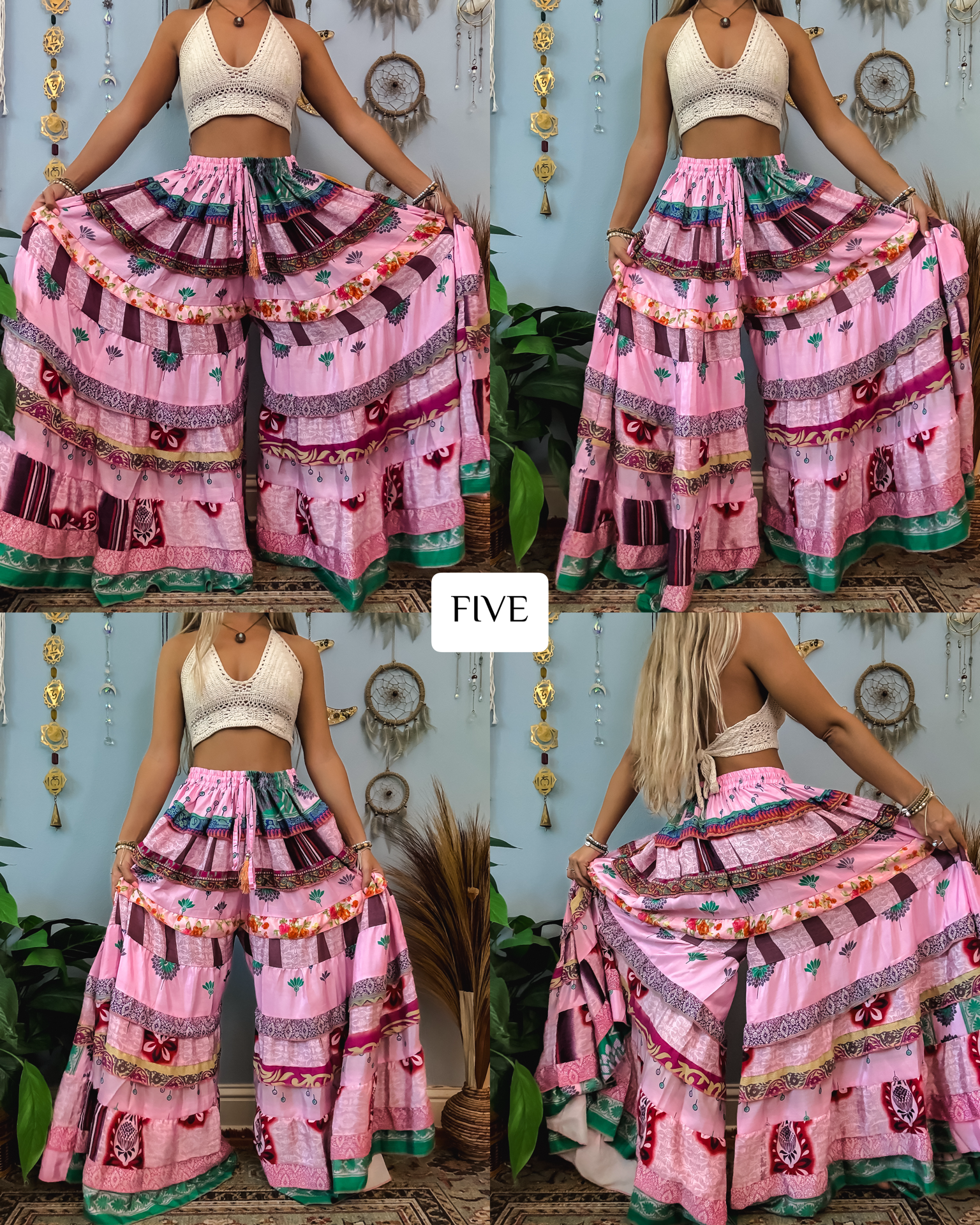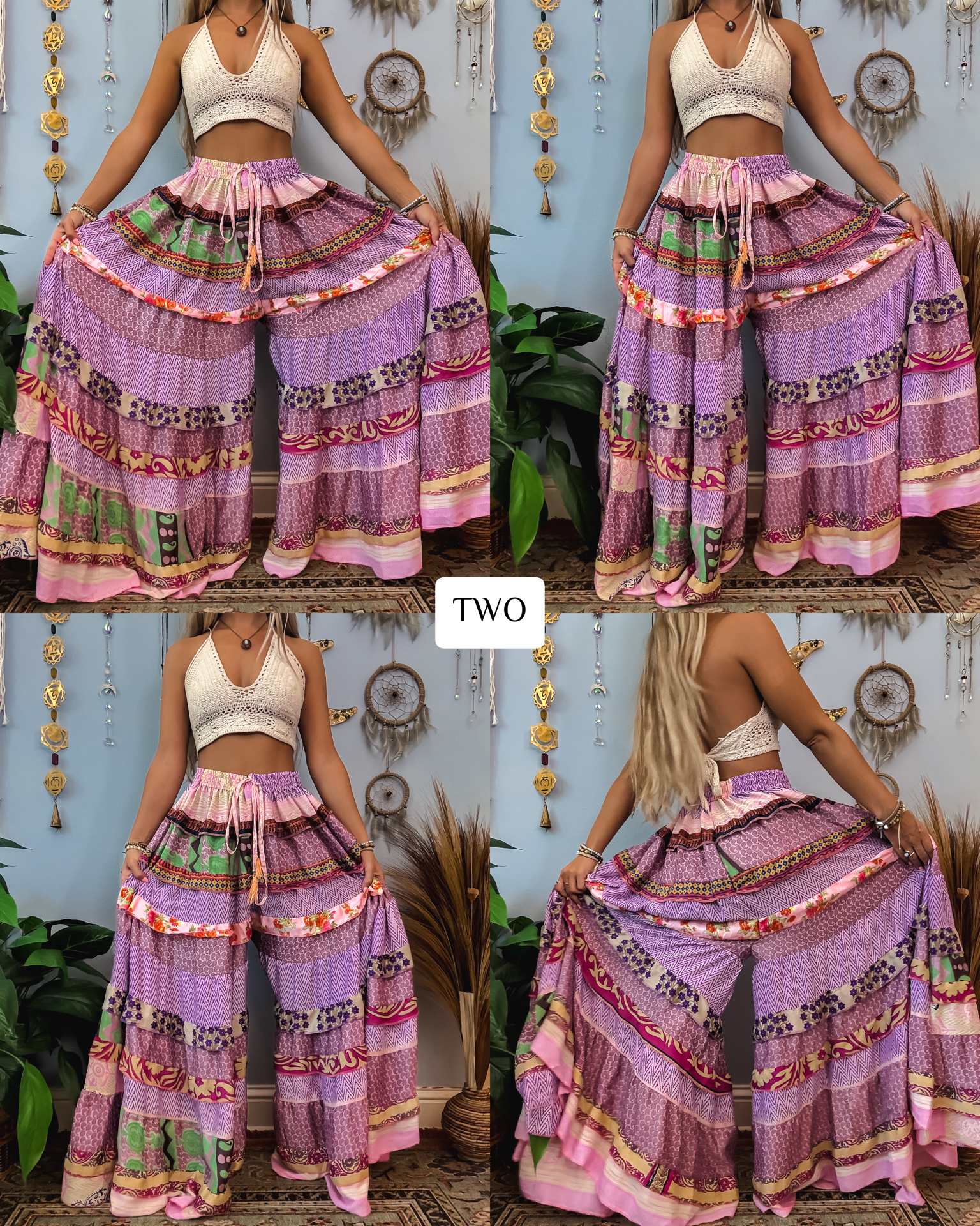 ✺ The ORIGINALLY designed and exclusive one of a kind Luna Tiered Pants by Ordinary Selenophile are handmade from recycled sari and silk scrap pieces, left over from other projects, that are stored for many months to handcraft each and every pair you see to prevent waste! Ordinary Selenophile works directly one on one with the team to create this original design by incorporating originality, creativity, economical sustainability and love into each pair you see today! As this garment is one of a kind, the pair you receive will be unique to you and only you as no two will ever be identical.