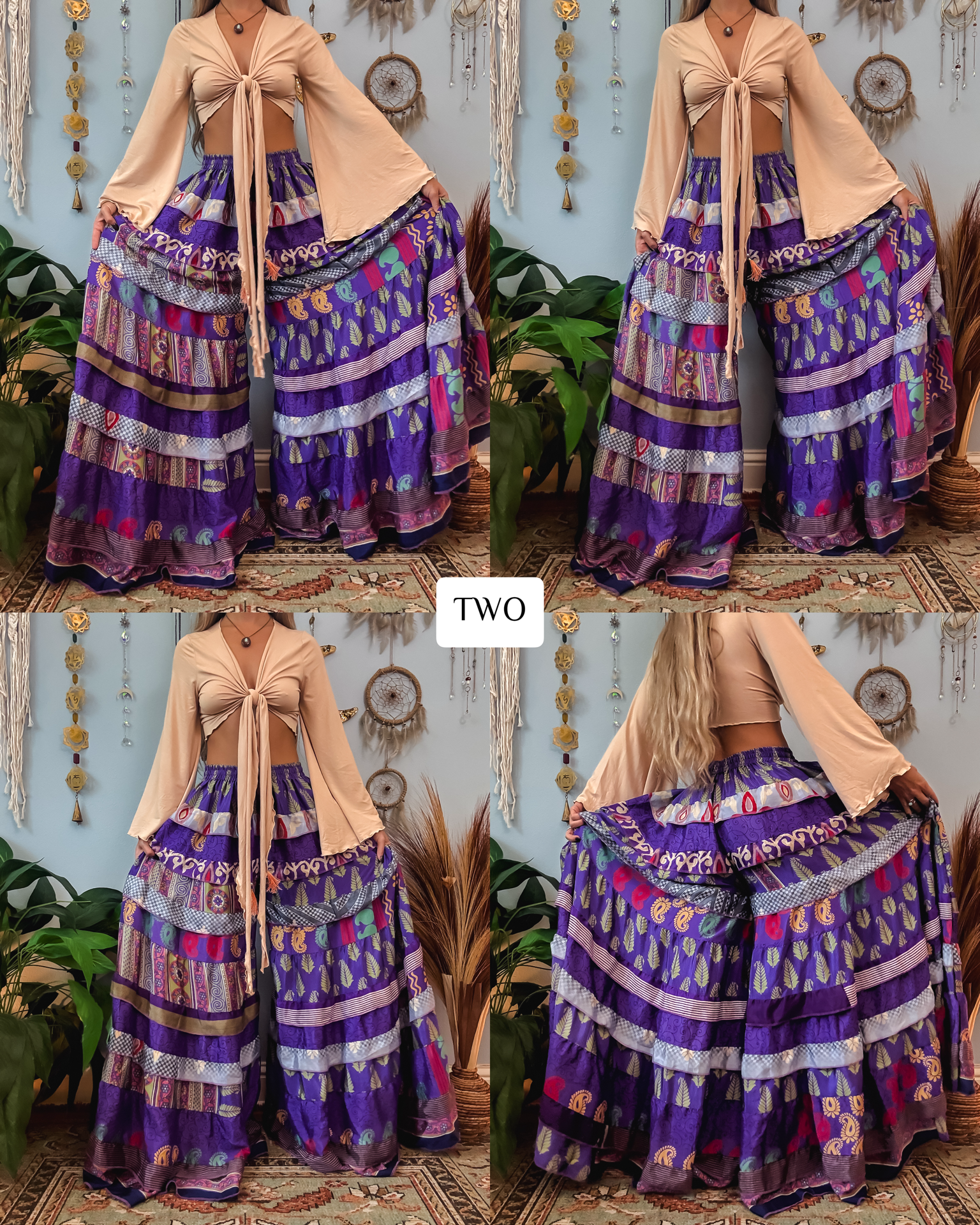 ✺ The ORIGINALLY designed and exclusive one of a kind Luna Tiered Pants by Ordinary Selenophile are handmade from recycled sari and silk scrap pieces, left over from other projects, that are stored for many months to handcraft each and every pair you see to prevent waste! Ordinary Selenophile works directly one on one with the team to create this original design by incorporating originality, creativity, economical sustainability and love into each pair you see today! As this garment is one of a kind, the pair you receive will be unique to you and only you as no two will ever be identical.