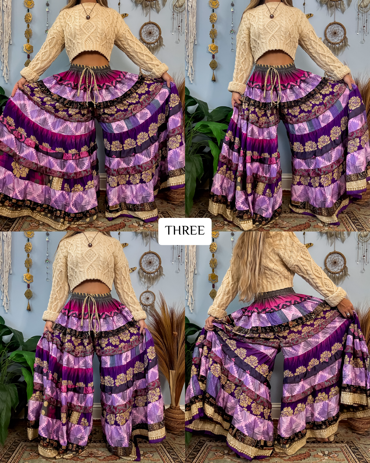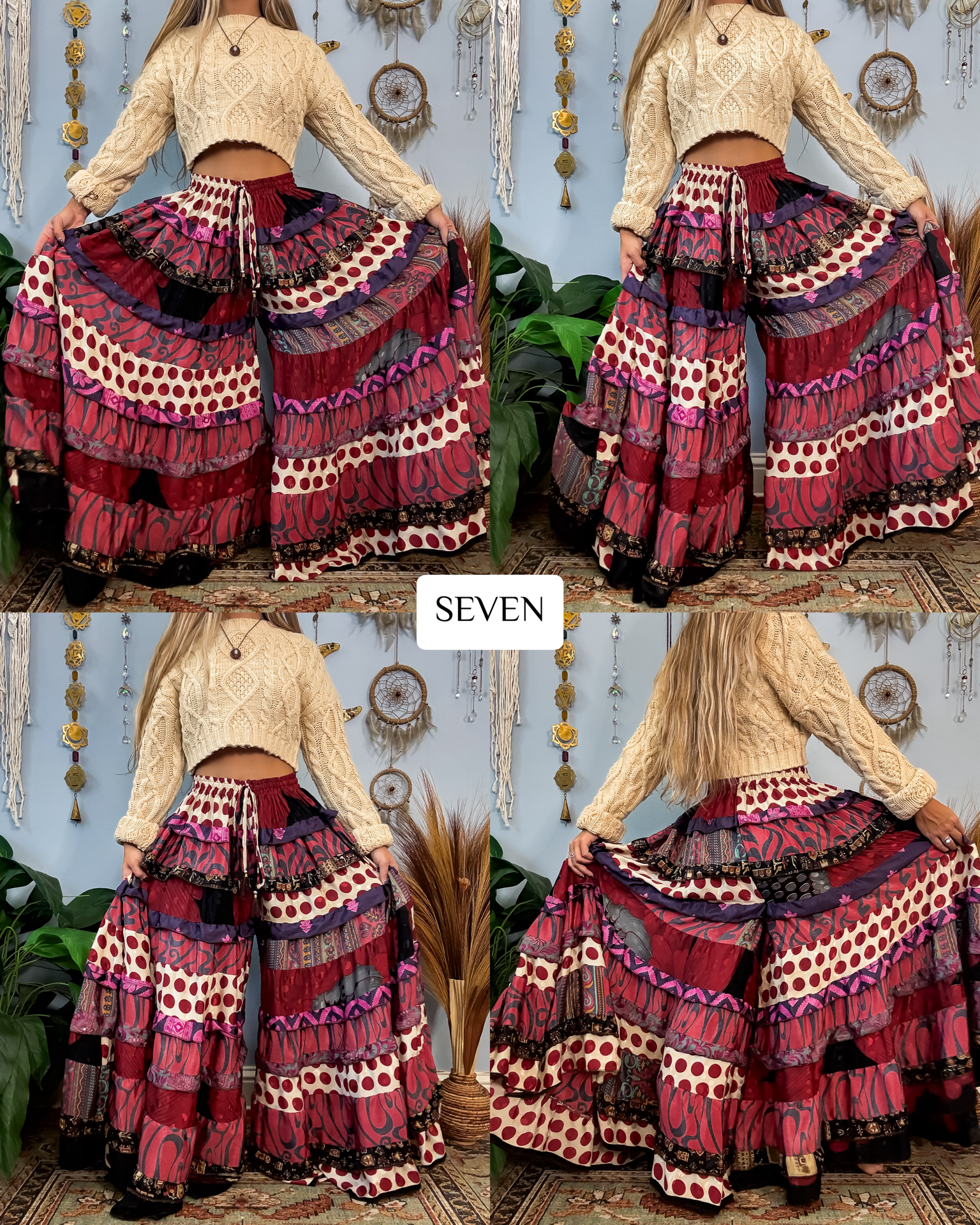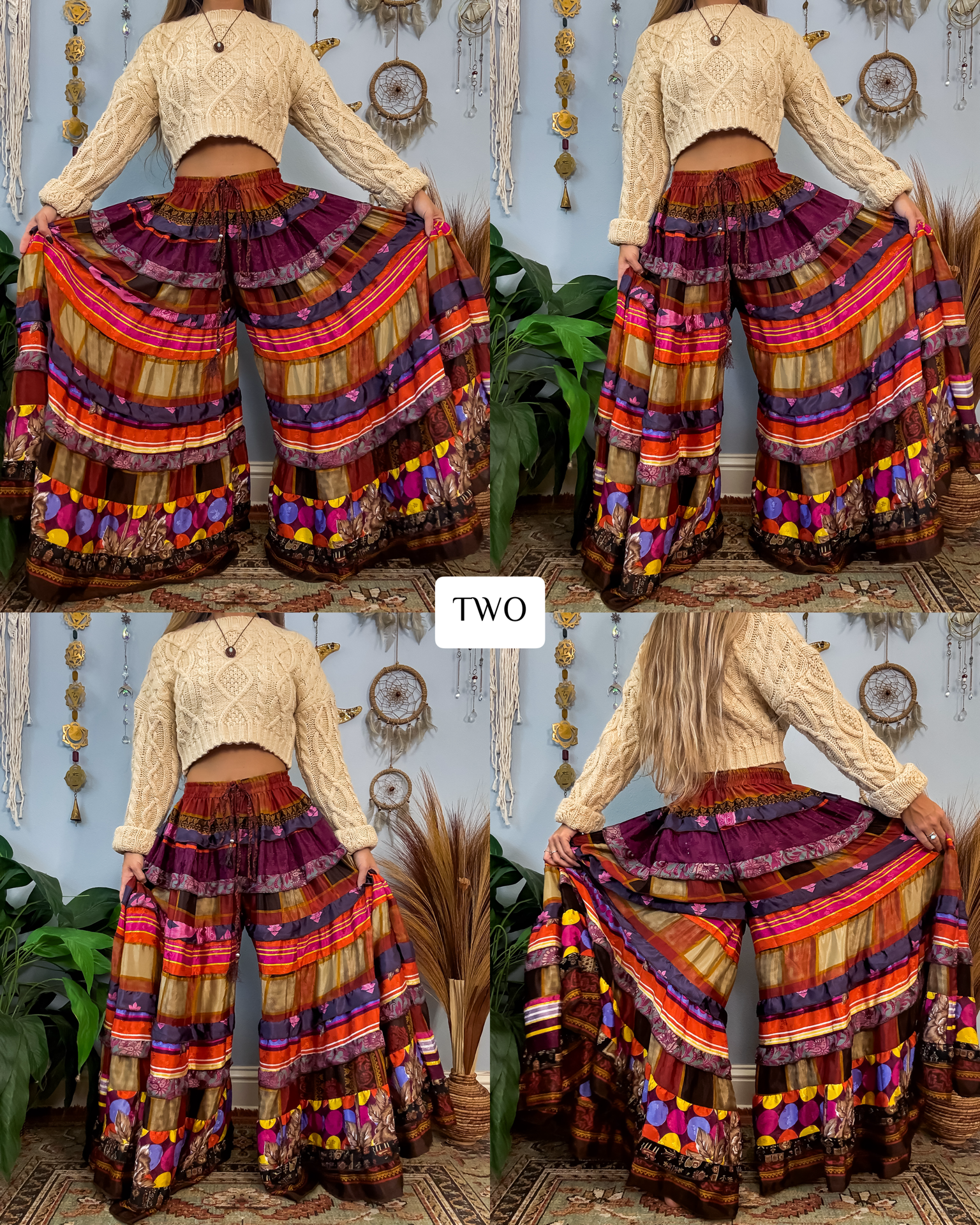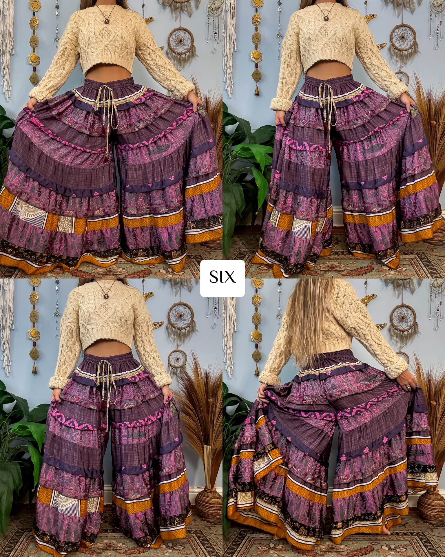 ✺ The ORIGINALLY designed and exclusive one of a kind Luna Tiered Pants by Ordinary Selenophile are handmade from recycled sari and silk scrap pieces, left over from other projects, that are stored for many months to handcraft each and every pair you see to prevent waste! Ordinary Selenophile works directly one on one with the team to create this original design by incorporating originality, creativity, economical sustainability and love into each pair you see today! As this garment is one of a kind, the pair you receive will be unique to you and only you as no two will ever be identical.