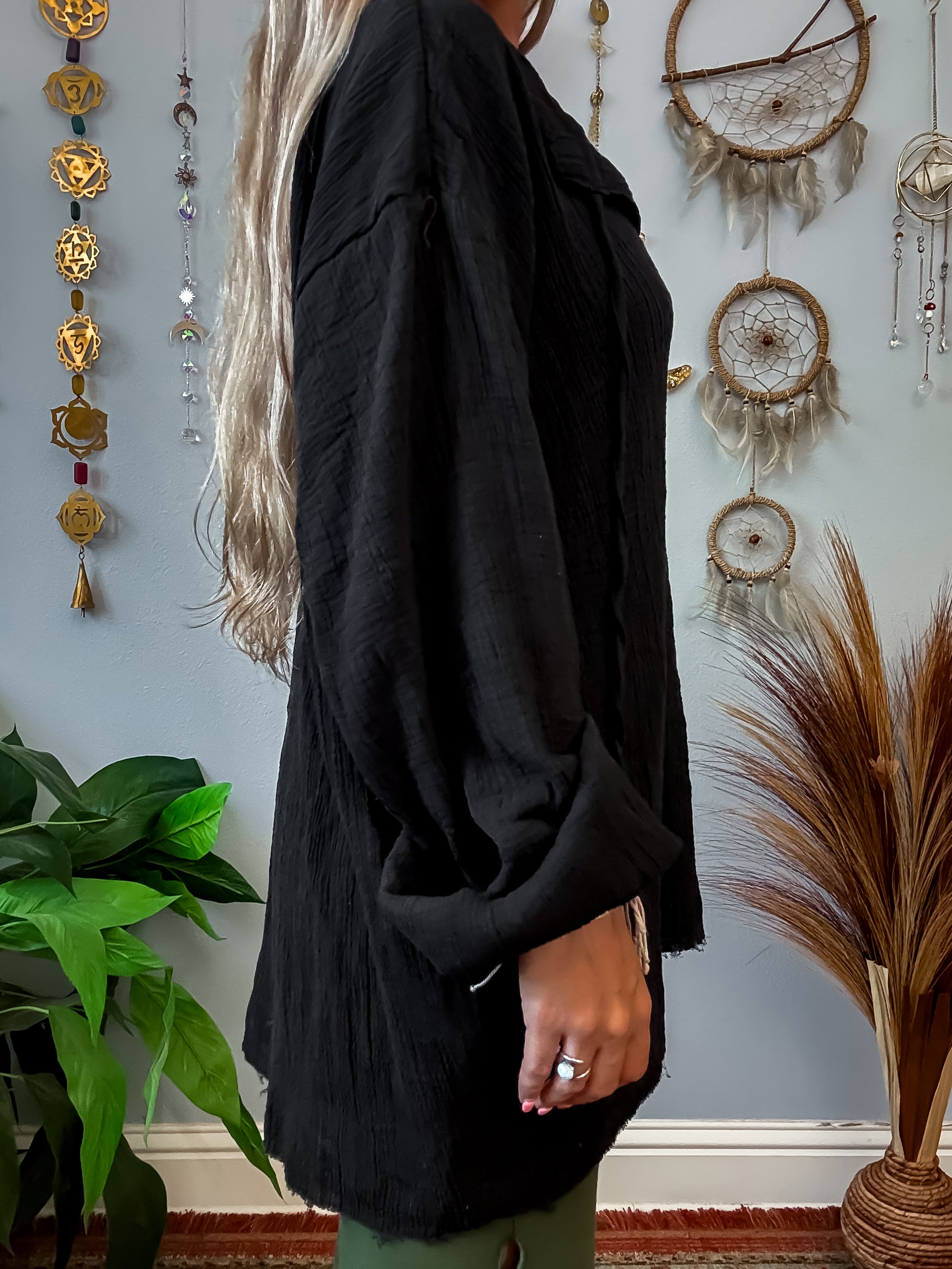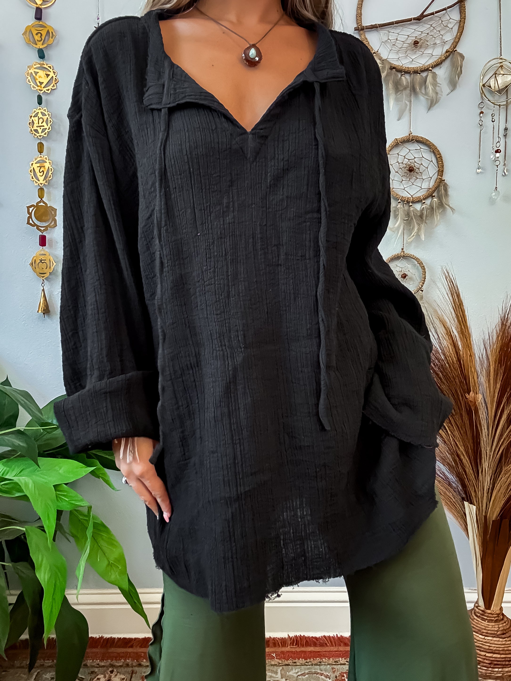 ✺ The Lark Long Sleeve Top features comfortable long sleeves and drawstring details (drawstring is not functional except for making a knot). This top provides both style and functionality for any occasion.